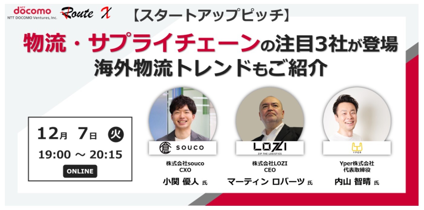 NTTドコモ・ベンチャーズ×RouteX Inc.の共催【スタートアップピッチ】物流・サプライチェーンの注目3社が登場+海外物流トレンドもご紹介!